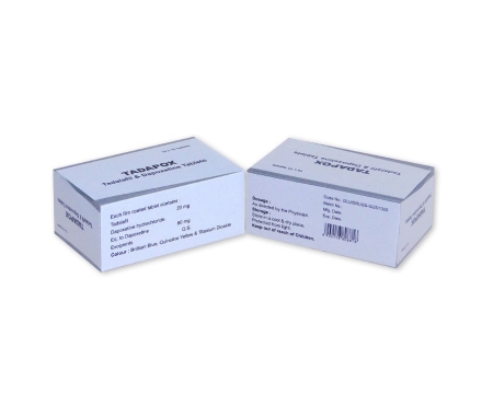 Questo farmaco viene fornito sotto forma di compresse per uso orale. Esiste un'unica forma di dosaggio di Tadapox disponibile sul mercato. Ogni compressa di Tadapox contiene Tadalafil 20 mg + Dapoxetina 60 mg.